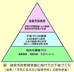 自殺予防教育を実施するためには、それに向けての下地づくりの教育が重要とされています。