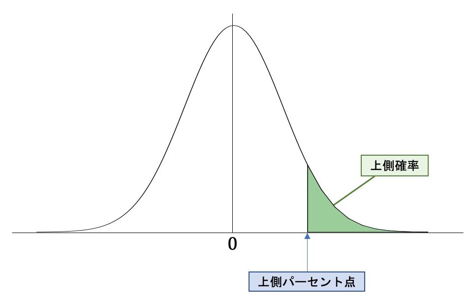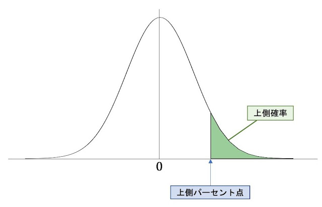 すなわち、上記で言えば、サンプルサイズが小さいと「上側パーセント点」つまり「棄却の限界値」は、右側に寄っていくこと(0から遠ざかっていく)になります。